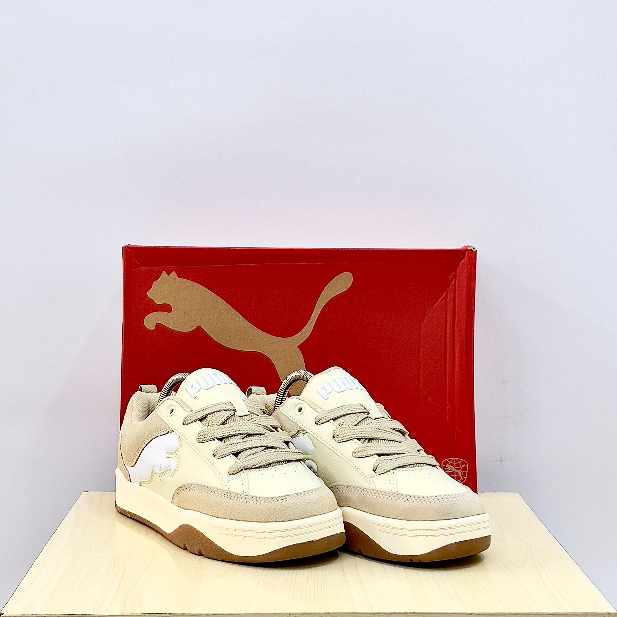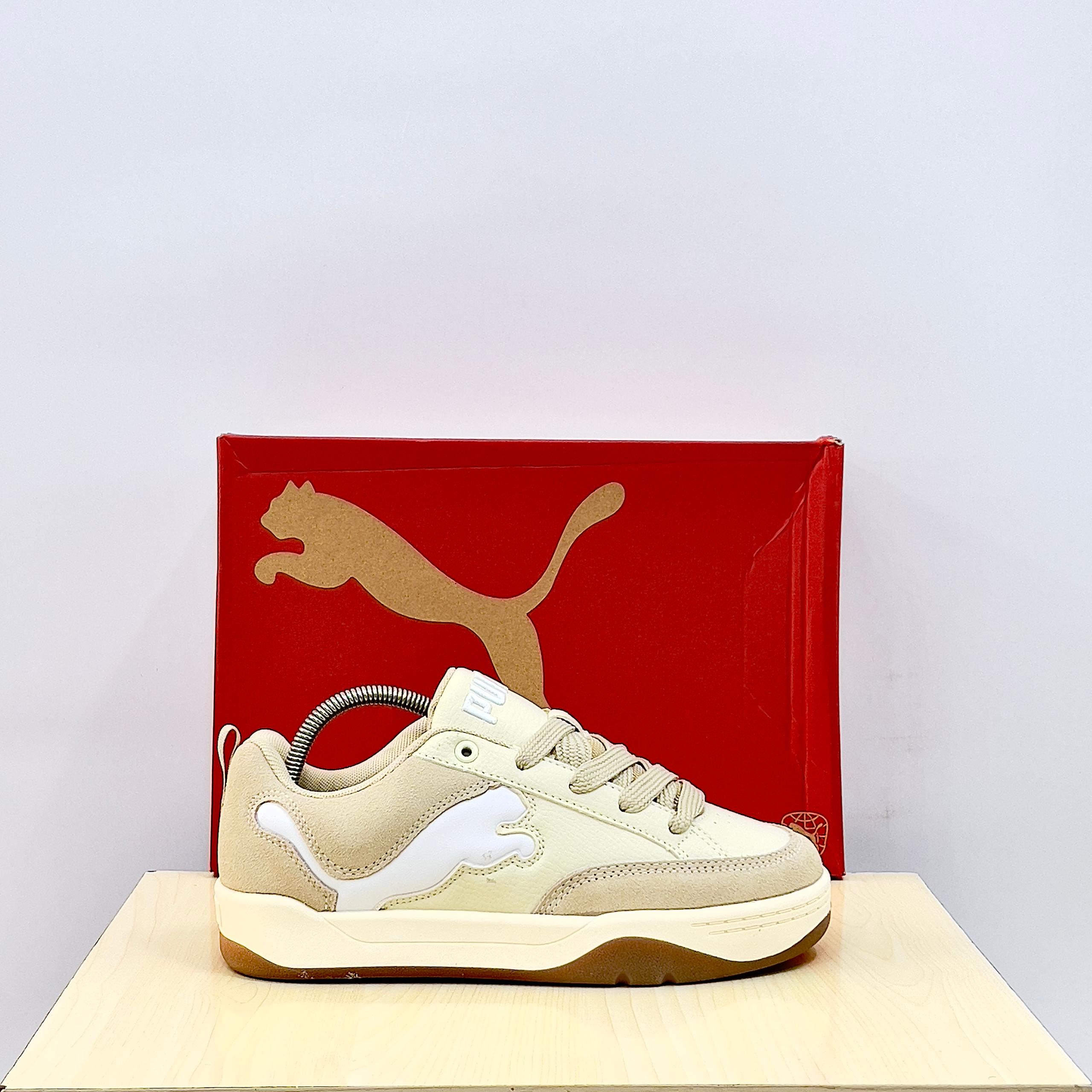 The Puma Park Lifestyle Sneakers in white/navy perfectly blend style, comfort, and versatility. This shoe sports a lace-up design that adds a touch of elegance and provides a secure fit for all your sports activities. Crafted with quality leather, these sneakers offer durability and a luxurious feel.